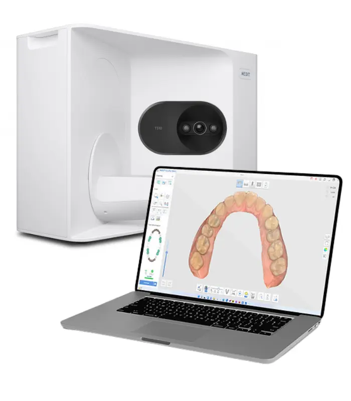 Medit T510 es el escáner de laboratorio de 2 cámaras. La tecnología punta del escáner garantiza exploraciones de la máxima calidad con gran precisión, siguiendo estrictas normas internacionales.