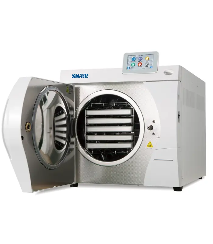 Siger EGO 23B+ autoclave modelo europeo clase B de 23 litros con 5 ciclos de esterilización, deja sus instrumentos secos y fríos. Gracias a su excelente rendimiento, completa un ciclo en solo 20 minutos.