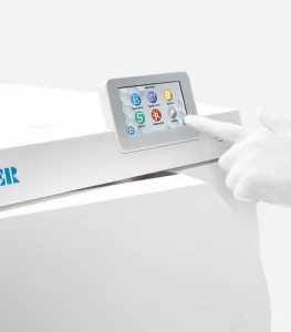 Pantalla táctil en color con excelente sensibilidad y navegación intuitiva. Muestra los datos de progreso del ciclo de esterilización y los errores en tiempo real.