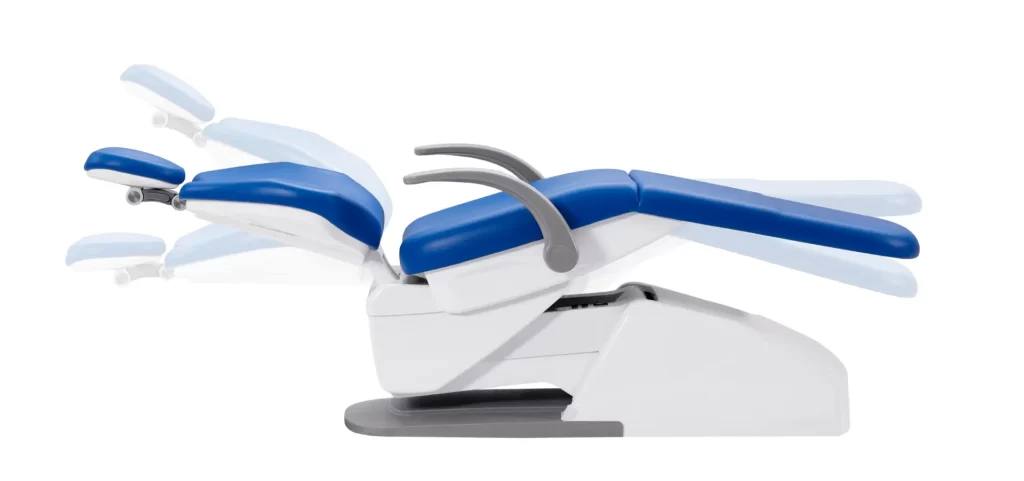 • El respaldo de aluminio ultrafino ofrece suficiente espacio para las piernas del dentista y el asistente.