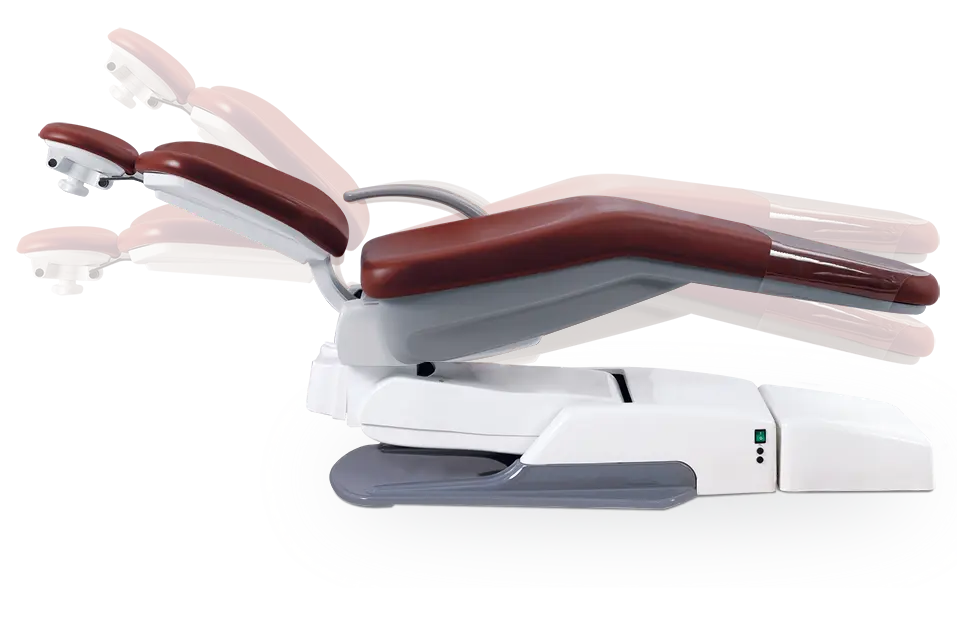Doble ajuste de seguridad para la parte inferior y el respaldo del sillón dental: cuando el cojín del asiento y el respaldo encuentren obstáculos durante el descenso, el movimiento descendente se detendrá inmediatamente y se elevará ligeramente de forma automática.