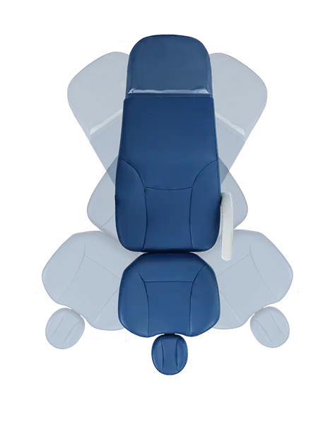• El respaldo de aluminio ultrafino ofrece al odontólogo un amplio espacio para las piernas que favorece una postura de trabajo ergonómica.